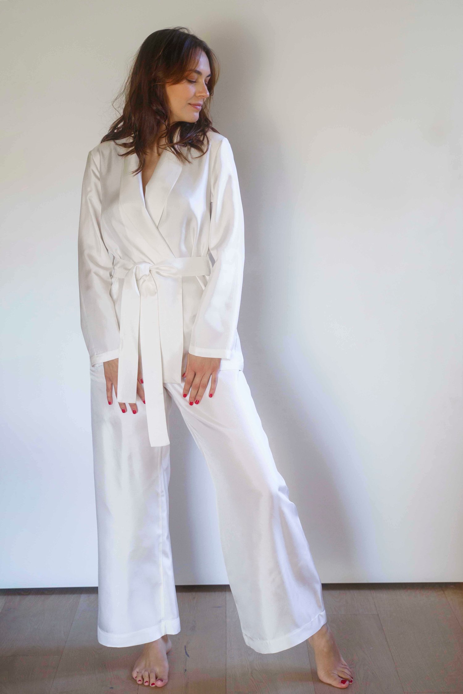 Care Comari, vi presento il nuovo modello “Luxury Silk”, un completo giacca e pantalone e, perché no, anche un pigiama elegante e raffinato, realizzato rigorosamente a mano preziosa seta.